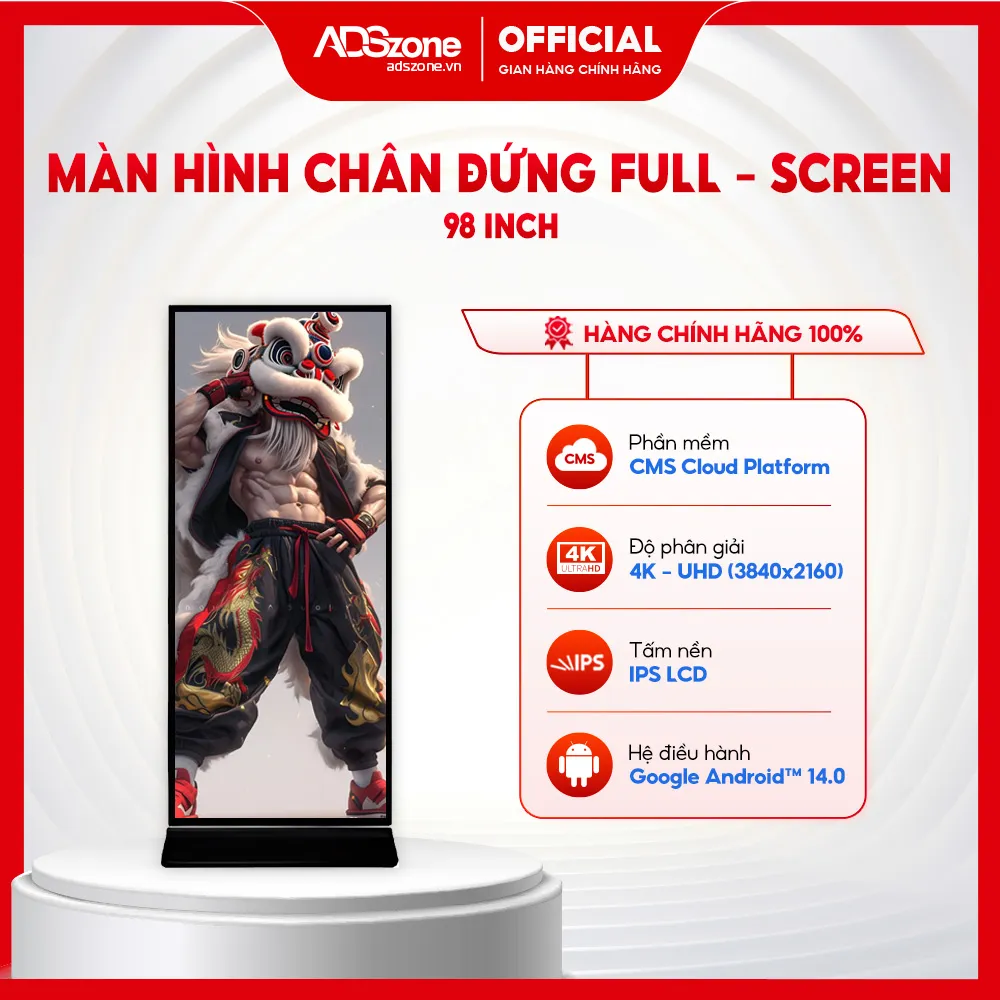 Màn Hình Quảng Cáo Chân Đứng Full-screen 98 Inch