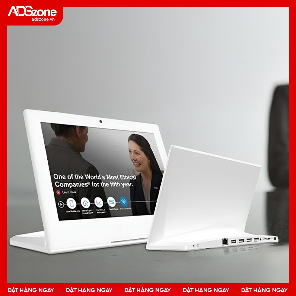 Thiết bị là giải pháp hiển thị gọn nhẹ, phù hợp đặt tại bàn lễ tân, quầy dịch vụ… Với hiệu năng ổn định, sản phẩm giúp doanh nghiệp triển khai điểm tương tác hiện đại và chuyên nghiệp