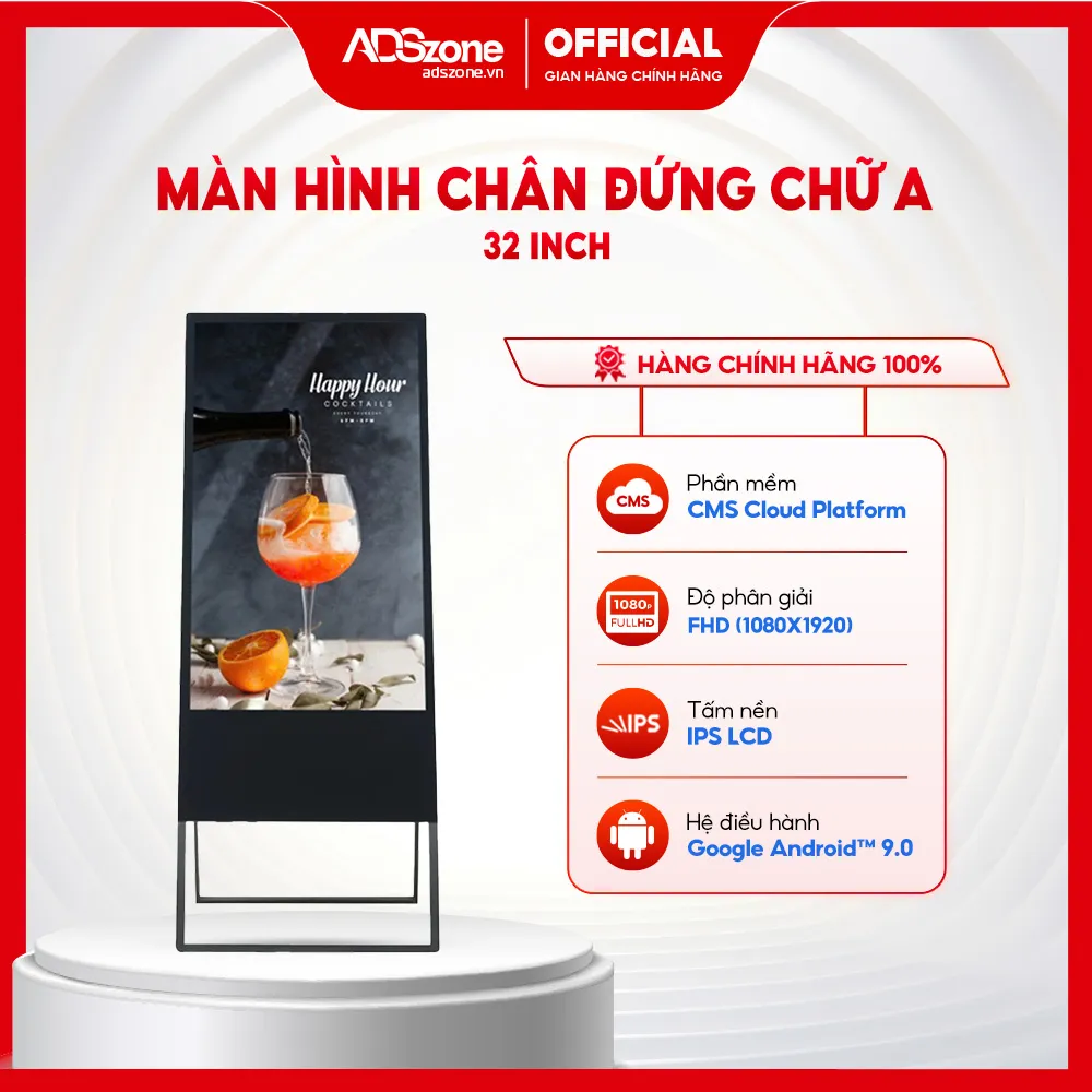 Màn hình chân đứng chữ A 32 Inch của ADSzone không chỉ là một thiết bị hiển thị, mà còn là một công cụ Marketing đắc lực. Với thiết kế tinh tế và khả năng trình chiếu sống động, sản phẩm giúp: