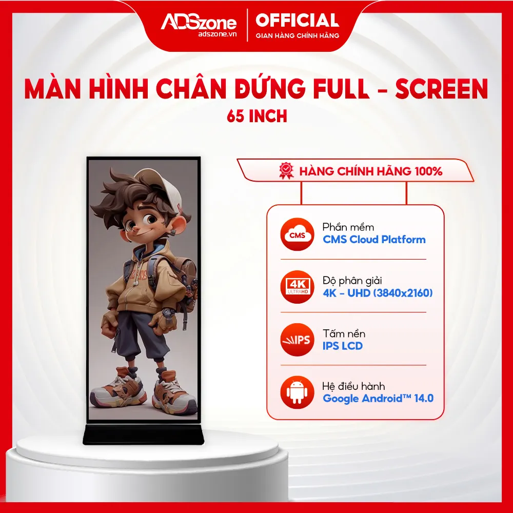 Màn Hình Quảng Cáo Chân Đứng Full-screen 65 Inch