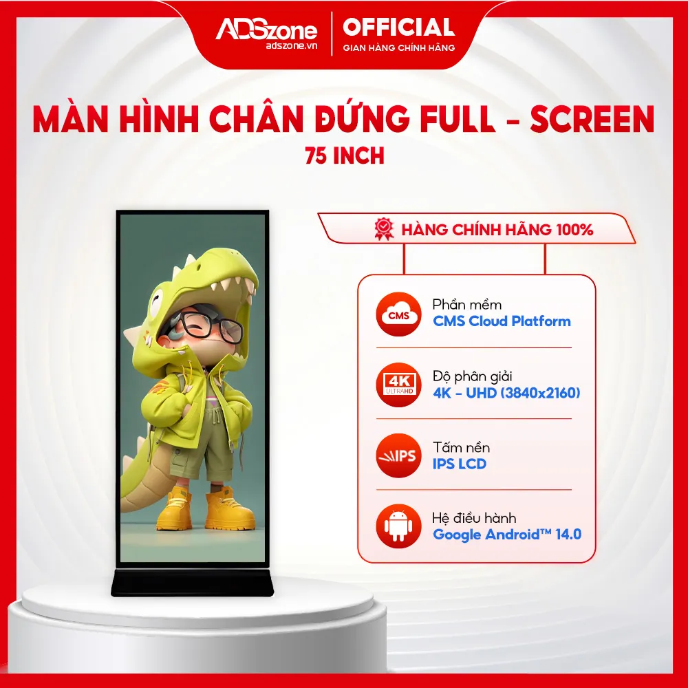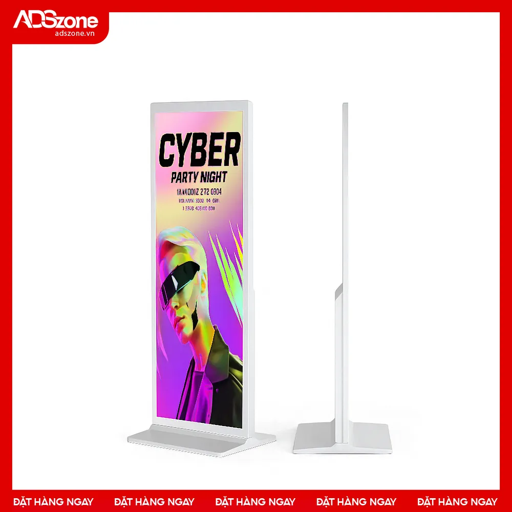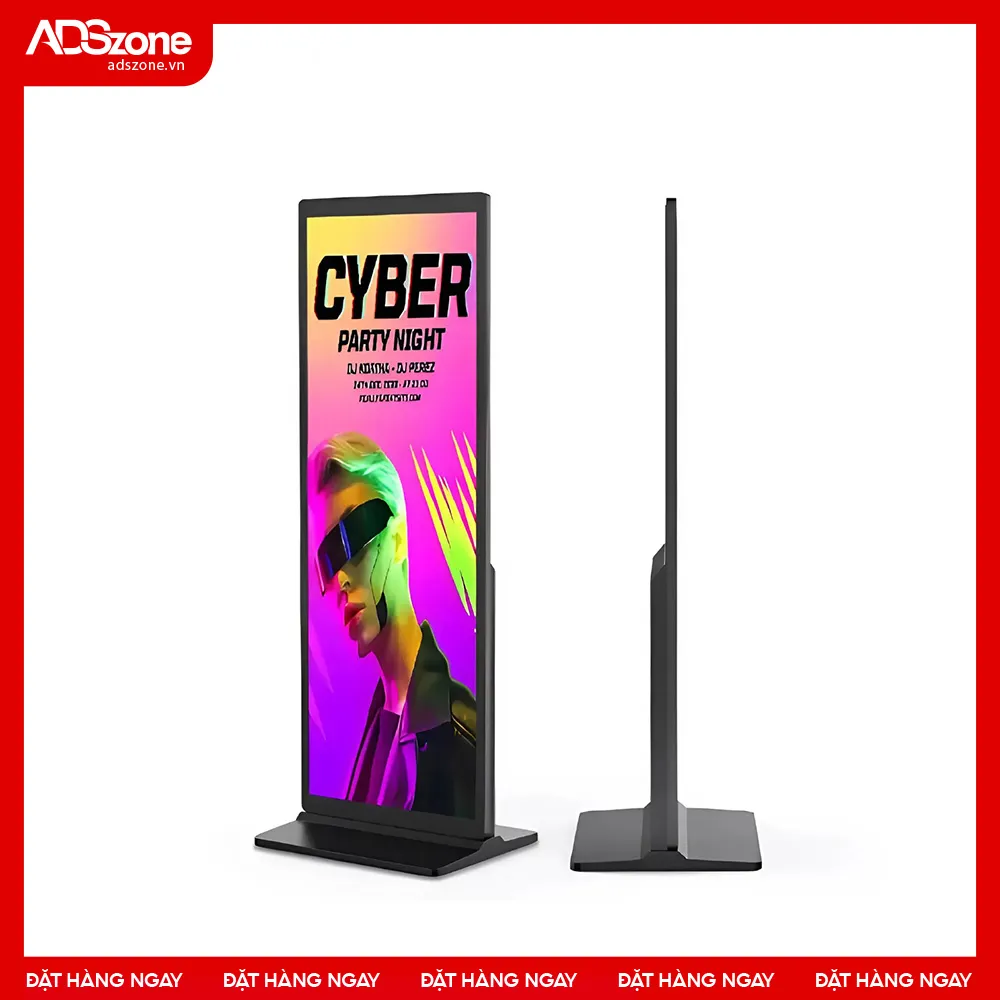 Màn hình chân đứng Full – Screen với thiết kế toàn màn hình liền mạch mang đến diện mạo hiện đại, sang trọng. Sản phẩm không chỉ tối ưu trải nghiệm hiển thị mà còn giúp thương hiệu tạo dấu ấn mạnh mẽ trong mọi không gian trưng bày.