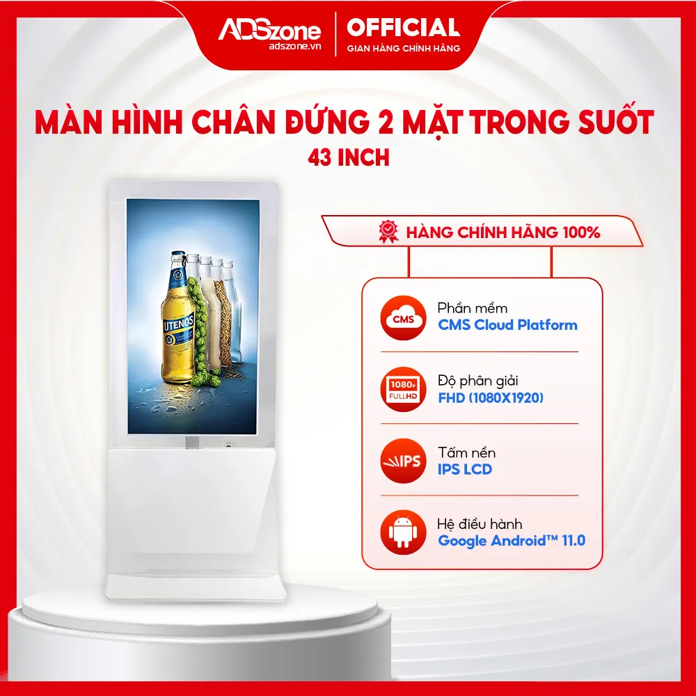 Màn Hình Chân Đứng Hai Mặt Trong Suốt 43 Inch