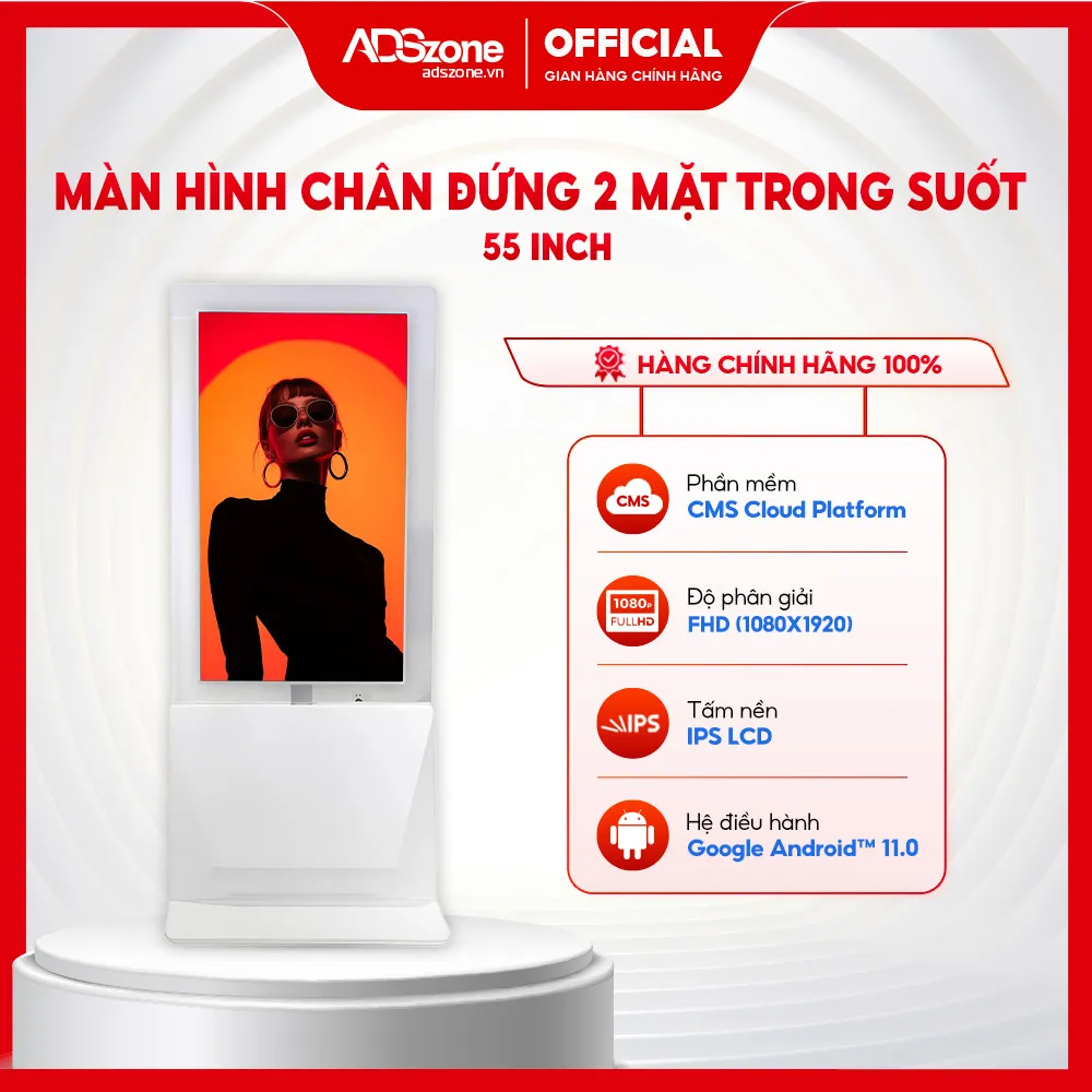 Màn Hình Chân Đứng Hai Mặt Trong Suốt 55 Inch