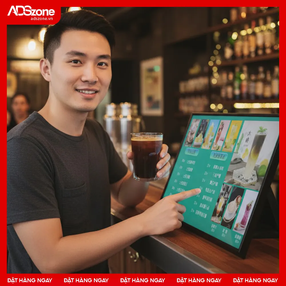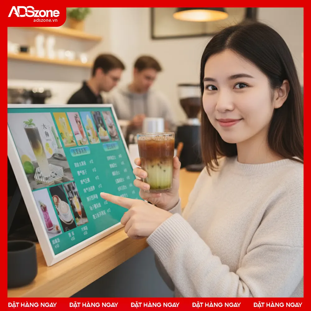 - Hiển thị sống động, thu hút ánh nhìn: Giúp thực đơn, thông báo và ưu đãi trở nên nổi bật, chuyên nghiệp hơn.
