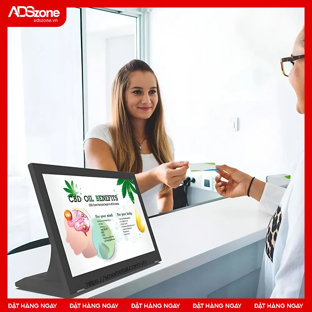 Thiết bị là giải pháp hiển thị gọn nhẹ, phù hợp đặt tại bàn lễ tân, quầy dịch vụ… Với hiệu năng ổn định, sản phẩm giúp doanh nghiệp triển khai điểm tương tác hiện đại và chuyên nghiệp
